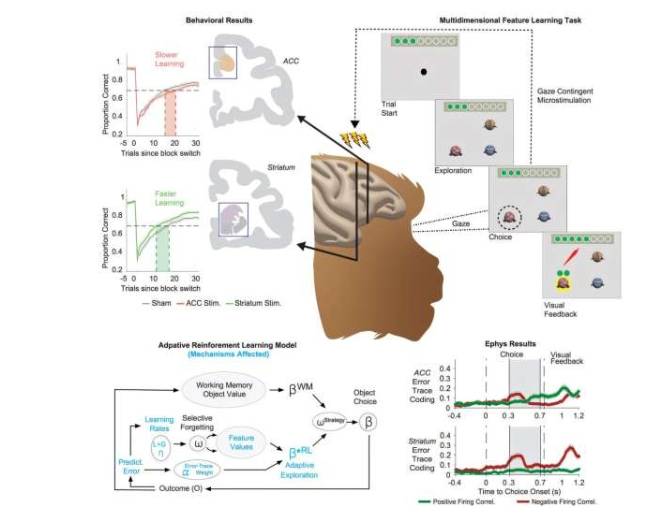 اكتشف علماء من Vanderbilt University Brain Institute، في دراسة رائدة نُشرت في مجلة Neuron، أن نشاط النبضات الكهربائية بين anterior cingulate cortex ومنطقة الـ striatum مرتبط مباشرة بقدرة التعلم المعرفي. يوفر هذا الاكتشاف أساسًا نظريًا لتطوير جيل جديد من تقنيات واجهة الدماغ والحاسوب (BCI) لعلاج اضطرابات الذاكرة والمعرفة.