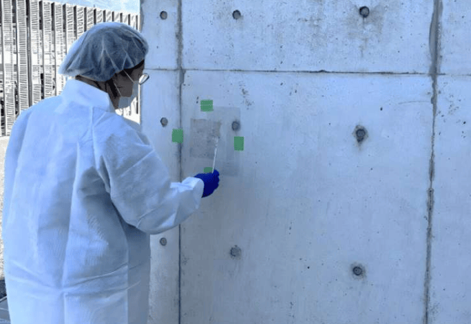 قام الباحثون بتسلسل جين 16S rRNA، وأخذوا عينات من سطح الخرسانة وداخلها ومن المواد الخام، واختبروا طريقتين: الحفر اللبي والتكسير بالمطرقة. وأشار أتسوشي تيراموتو، المؤلف المراسل للدراسة: "يتم دراسة العلاقة بين الميكروبيوم الخرساني والتدهور، لكن طرق أخذ العينات لم توحد بعد. إذا لم نفهم كيف تؤثر الطريقة على البيانات، فلن نتمكن من تطبيق المعلومات الميكروبية بشكل صحيح في التشخيص."