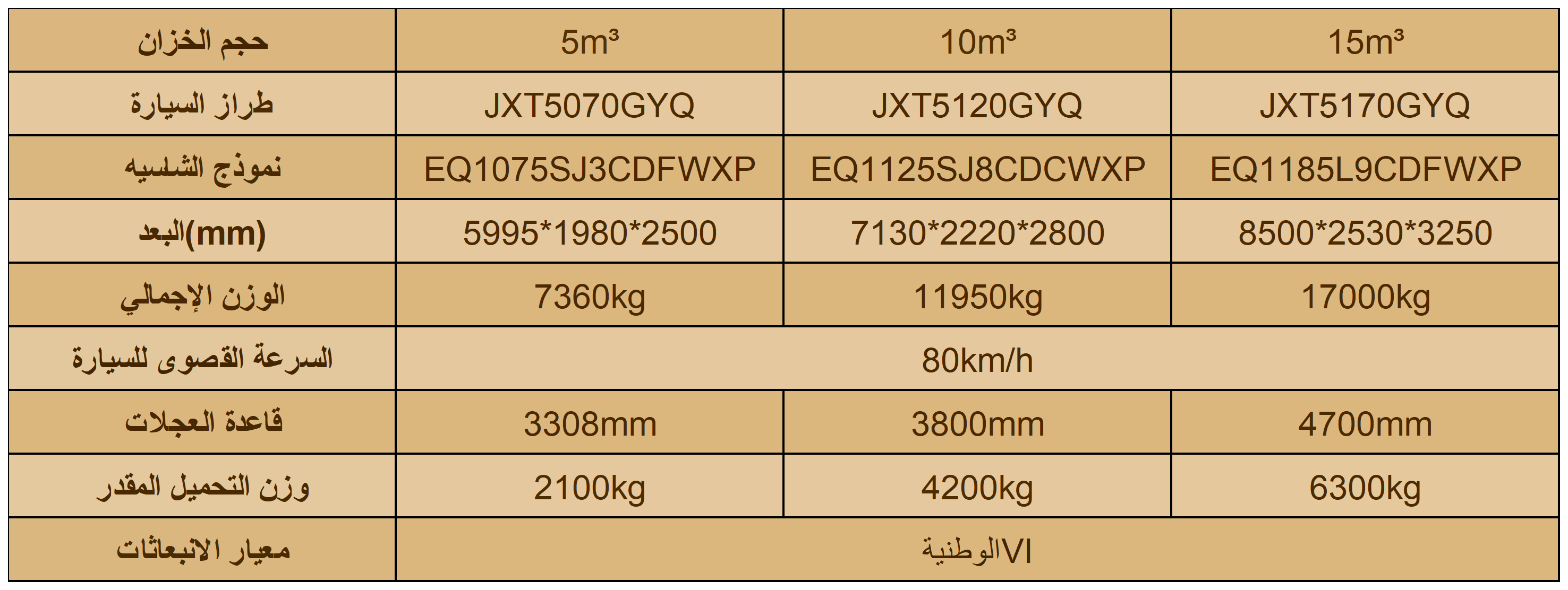 هذه المنتجات هي بشكل أساسي مواصفات 5m3، 10m3، 15m3، يمكن تخصيصها وفقًا لاحتياجات العملاء. من خلال منصة خدمة سلامة الشركة المصنعة التي تم تطويرها ذاتيًا، لتحقيق التطابق الوثيق المشفر بين الملصق الإلكتروني للشاحنة وجهاز القراءة الإلكتروني للصهاريج، لضمان تفريغ نقطة ثابتة للصهاريج وخزان الغاز. ويمنع تفريغ السوائل من الأسطوانات أو الخزانات غير المصرح بها أو المعتمدة