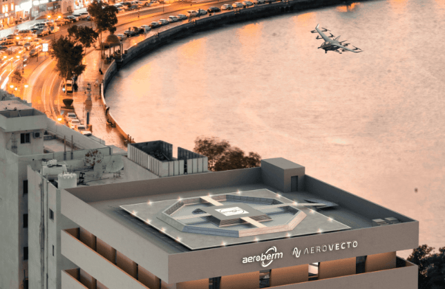 يتصدى نظام مهبط الطائرات العمودية "إيروبيرم" من سكاي بورتز لتحدٍ رئيسي في تشغيل مركبات الإقلاع والهبوط العمودي الكهربائية، وهو إدارة تدفق الهواء النازل والجانبي بأمان وكفاءة. تعمل هذه التقنية على تقليل التداخل مع الأشخاص والطائرات المجاورة والمعدات الأرضية من خلال التحكم في تدفق الهواء، مما يقلل من تأثيرات الاضطرابات، ويسمح بتخطيط مهبط الطائرات العمودية في مواقع أكثر إحكامًا أو ذات ظروف تجارية أفضل.