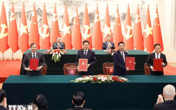 بعد المحادثات، شهد قادة البلدين الصيني والفيتنامي معًا التوقيع على سلسلة من وثائق التعاون التي تغطي مجالات متعددة مثل الدبلوماسية والأمن والبنية التحتية والعلوم والتكنولوجيا والتعليم، وكان التعاون السككي من أبرز النقاط المهمة. وقعت وزارة البناء الفيتنامية ولجنة التنمية والإصلاح الوطنية الصينية مذكرة تفاهم بشـأن تعزيز التعاون في تدريب الكوادر الفيتنامية في مجال السكك الحديدية؛ كما وقعت وزارة البناء الفيتنامية ووزارة التجارة الصينية شهادة تسليم نتائج مشروع دراسة الجدوى لسكة حديد لاو كاي - هانوي - هايفونغ.